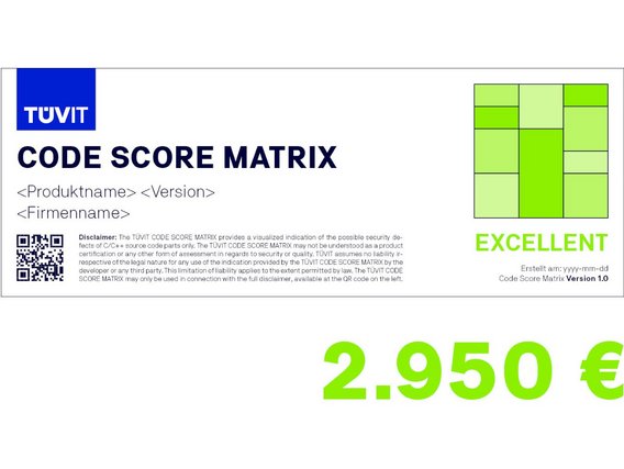 Whether smart home system, enterprise application or IoT device: TÜVIT's fully automated software check for your C/C++ source code is based on a code sensor that identifies potential vulnerabilities and the degree of fragmentation. These are visualised in the form of the Code Score Matrix, a meaningful test label about the code quality of your code.